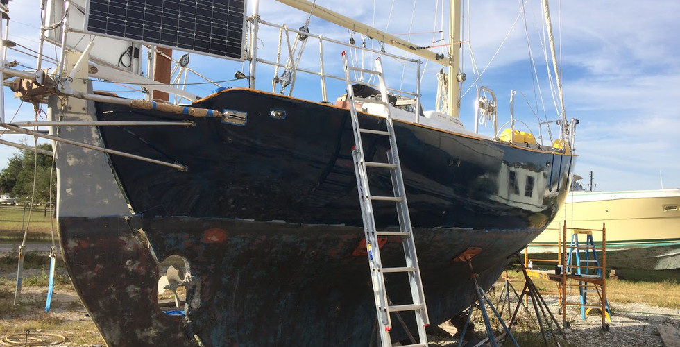 When I arrived in Carrabelle, Florida on June 13th, 2016, Annie was put on the hard for a minor refit, (Sailor terminology for taken out of the water and placed on stands in a boatyard). Of course, I have learned with boats, the word "minor," can mean more than it implies. My original plan was to have the refit work completed within three months... again, "minor" doesn't always work out like you think it will. We're fast approaching five months... BUT the water is in sight!
